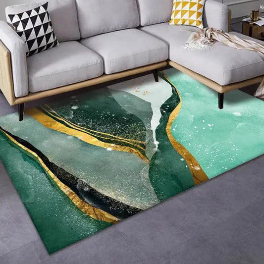Nowoczesny dywan do pokoju z marmurowym wzorem | Zielona elegancja