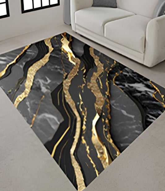 Nowoczesny, elegancki dywan | Czarna elegancja ze złotem
