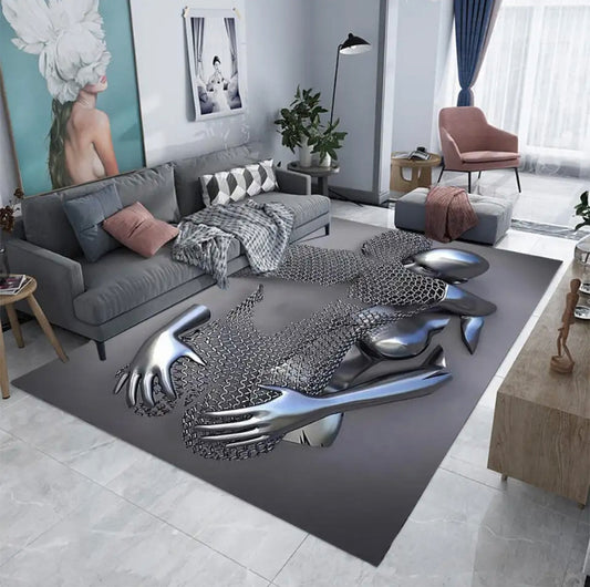 NOWOCZESNY DYWAN ze wzorem w efekcie 3D | "Metalowe objęcie"