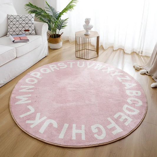 Okrągły dywan do pokoju dziecięcego w odcieniach różu | Alfabet