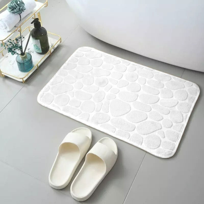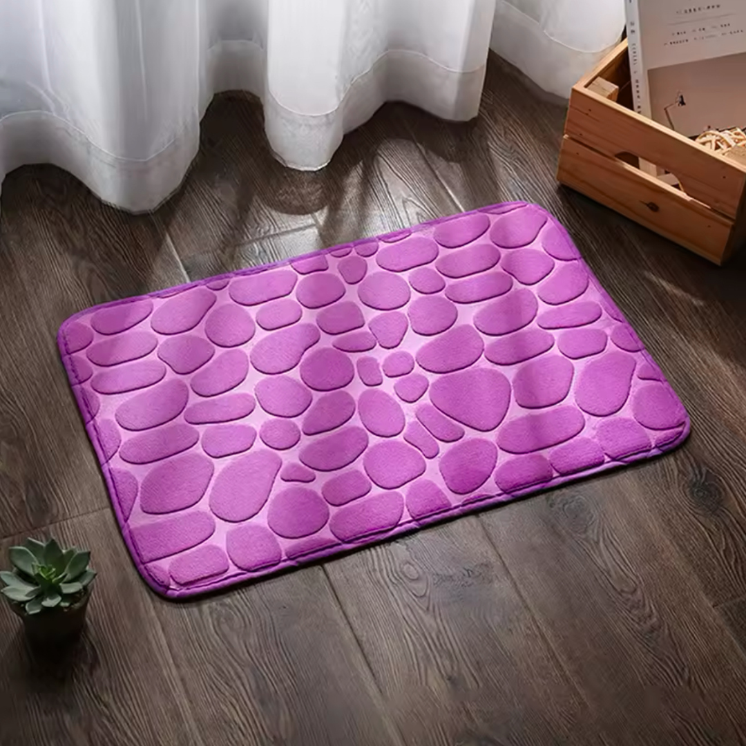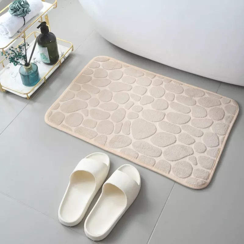 Praktyczny i dekoracyjny chodniczek do łazienki. Dywanik jest jednocześnie bardzo funkcjonalny i modny. Pasuje do różnego wystroju łazienki oraz wyróżnia się fakturą imitującą powierzchnię ułożonych obok siebie kamieni.