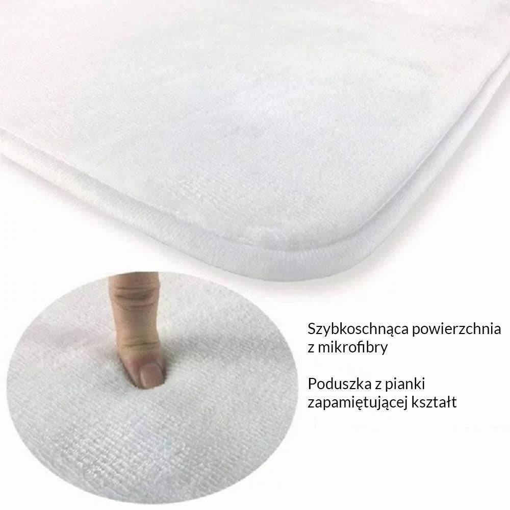 Dywanik łazienkowy wyprodukowane zostały z wytrzymałych włókien dzięki temu jest niezwykle łatwy w czyszczeniu i odporny na zabrudzenia. Wierzch pokryty jest miękką, aksamitną tkaniną, która szybko wchłania wodę i brud