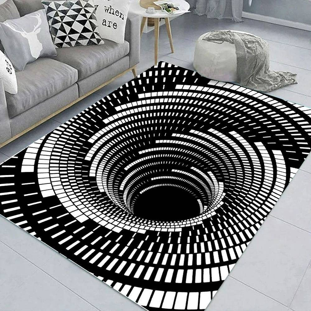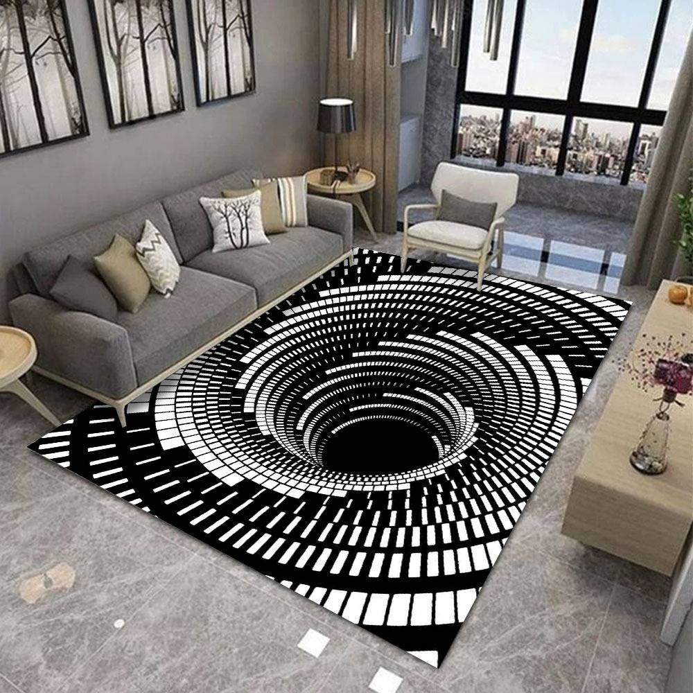 NOWOCZESNY DYWAN 3D | Biało-Czarna Iluzja Optyczna