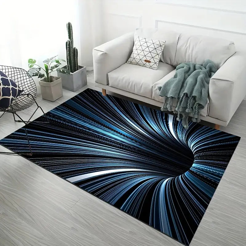 Dywan 3D - Optic Swirl to wyjątkowy produkt, który wyróżnia się swoim oryginalnym wzorem. Iluzja optyczna, którą prezentuje, przyciąga uwagę i sprawia, że dywan staje się ciekawym elementem dekoracyjnym w pokoju. Wzór tworzy dynamiczny i pełen energii wir. Efekt trójwymiarowości, który wydaje się wnikać w powierzchnię dywanu, dodaje mu głębi i wprowadza do pokoju nowoczesny i futurystyczny wygląd.