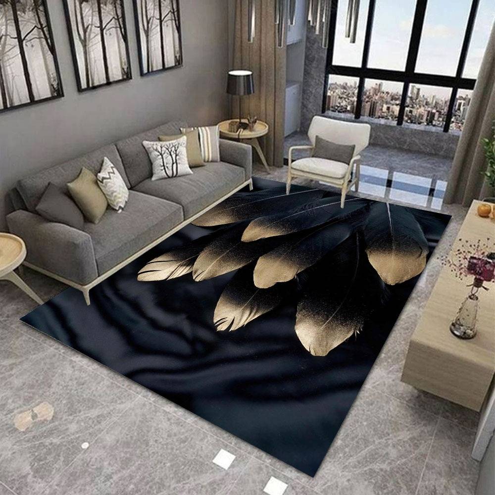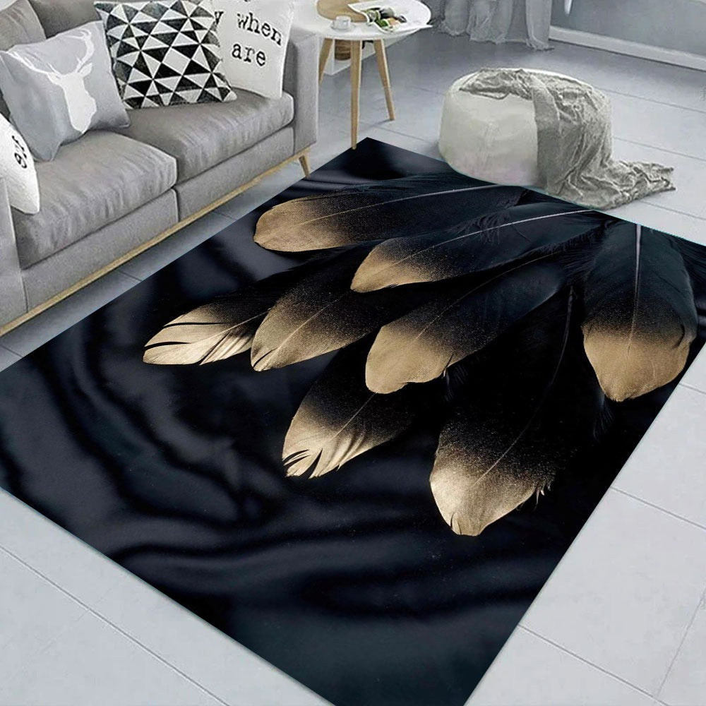 NOWOCZESNY DYWAN z motywem piór | CZARNA ELEGANCJA