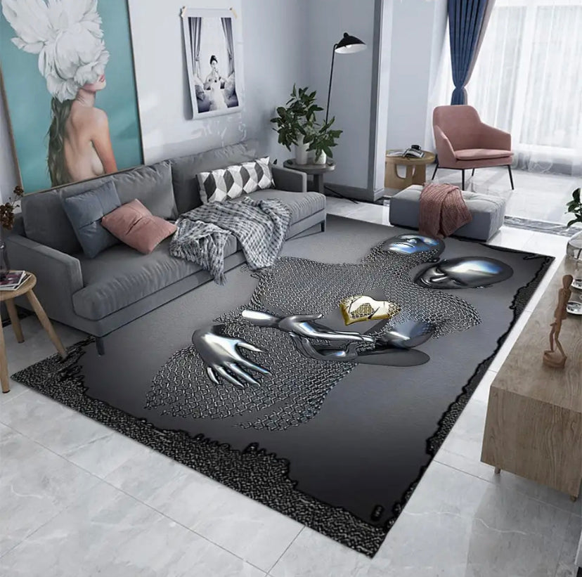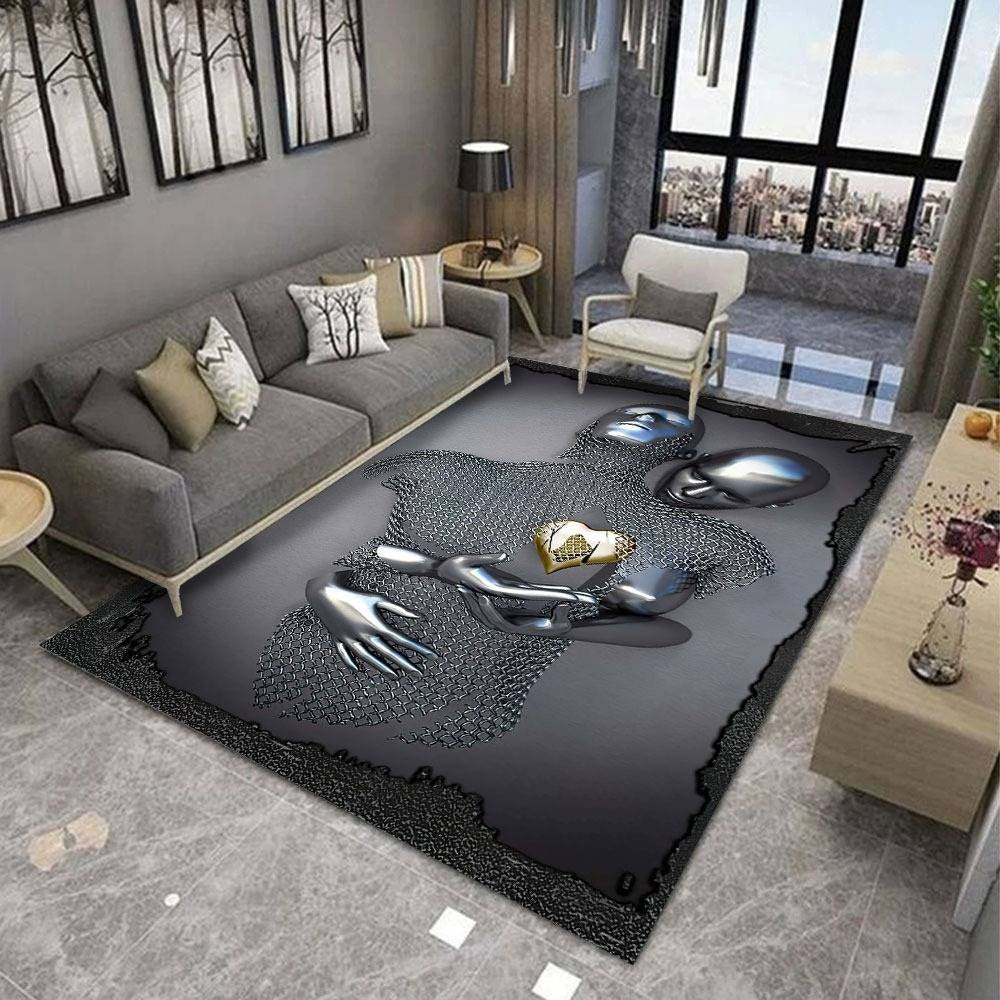Nowoczesny dywan "Metalowy symbol miłości" ze wzorem w efekcie 3D to innowacyjny i stylowy dodatek do każdego wnętrza. Wzór na dywanie przedstawia postacie niczym rzeźbę jako metalowy symbol miłości, który dzięki efektowi 3D nabiera trójwymiarowości i głębi. Całość tworzy piękny i romantyczny obraz, który przyciąga uwagę i dodaje pomieszczeniu wyjątkowego klimatu. Dywan ten to doskonały wybór dla osób, które szukają nietypowych i oryginalnych dodatków do swojego wnętrza.